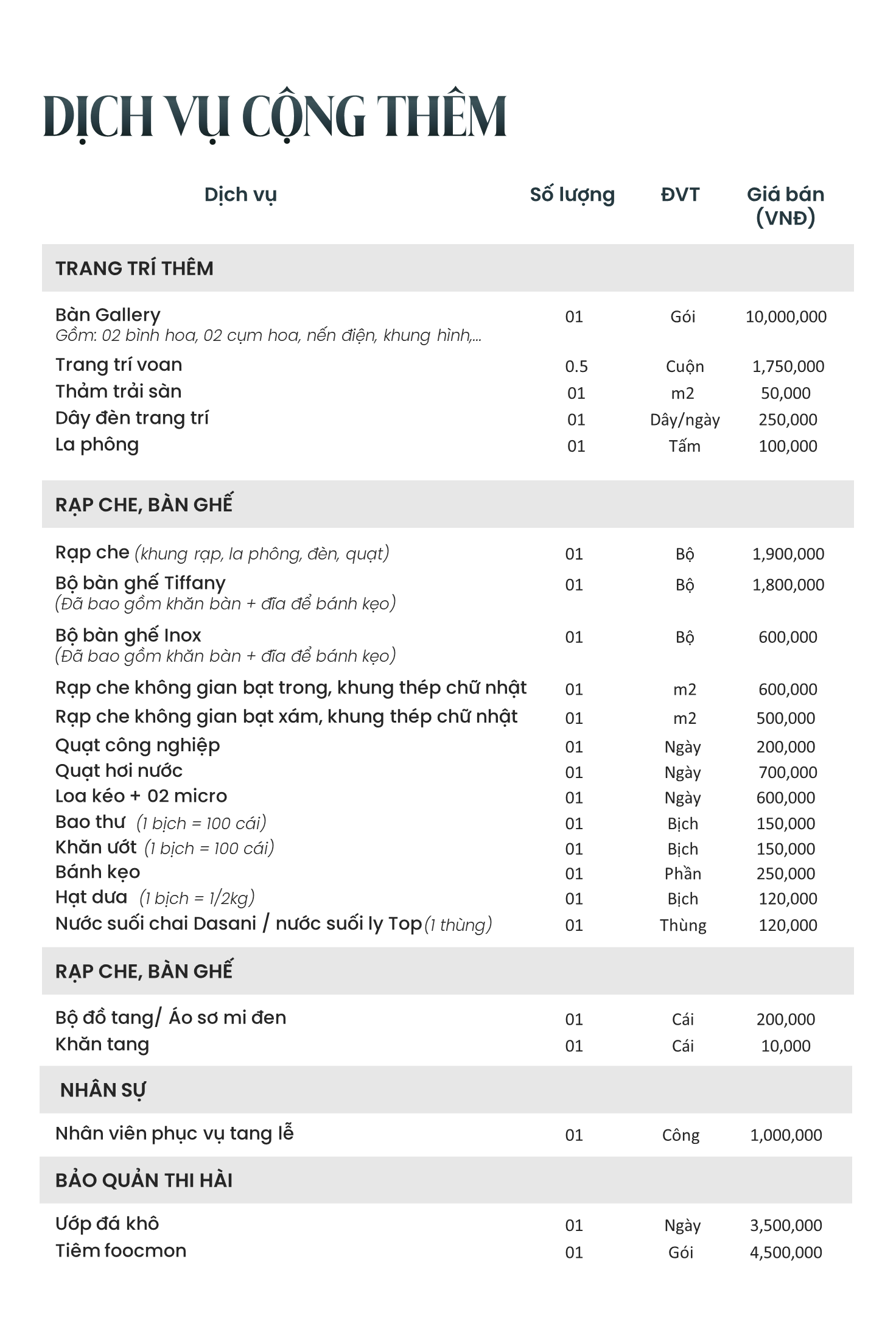 DỊCH VỤ CỘNG THÊM