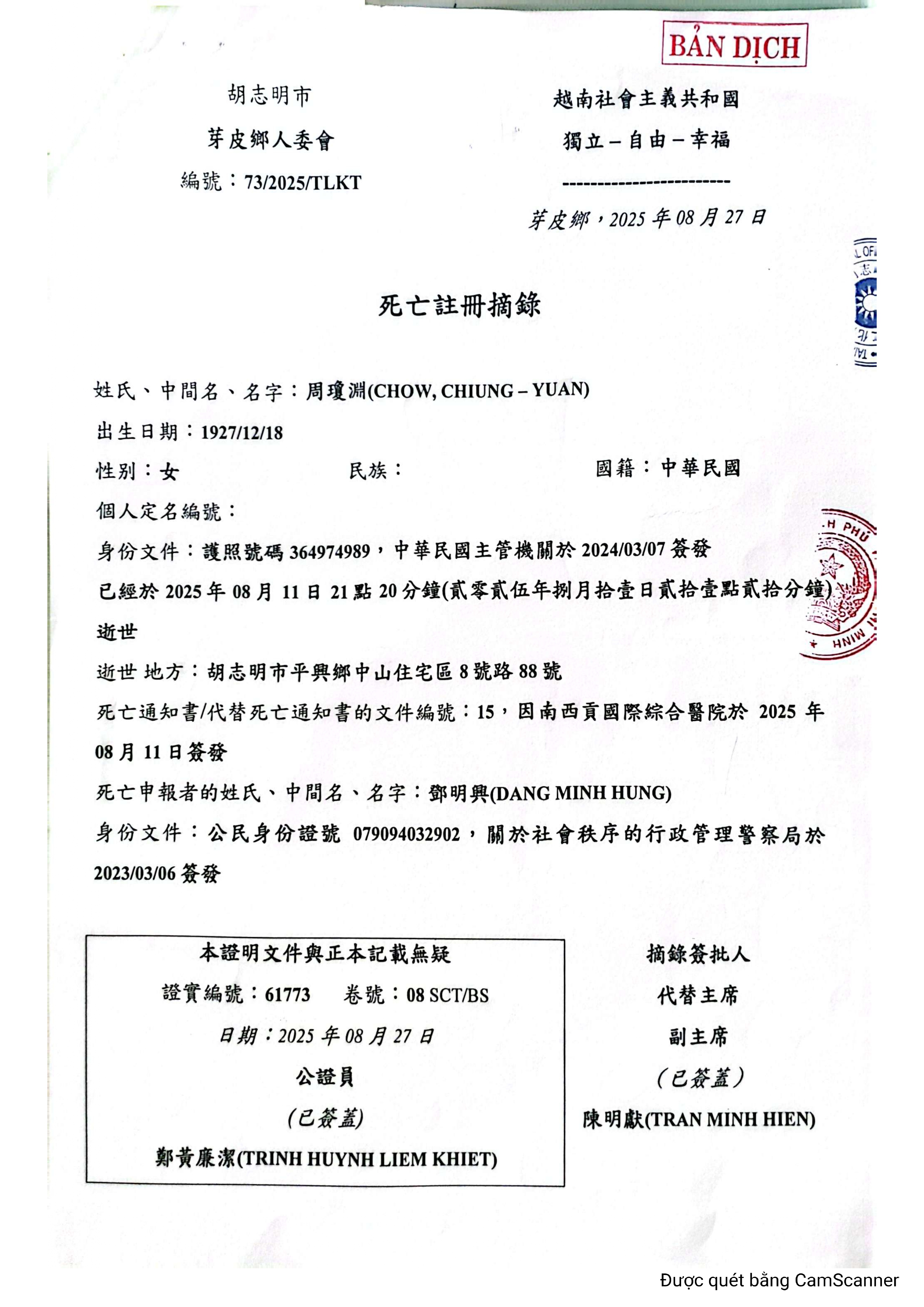 Hỗ trợ khai báo và làm thủ tục giấy tờ liên quan đến khai tử, và chứng tử.