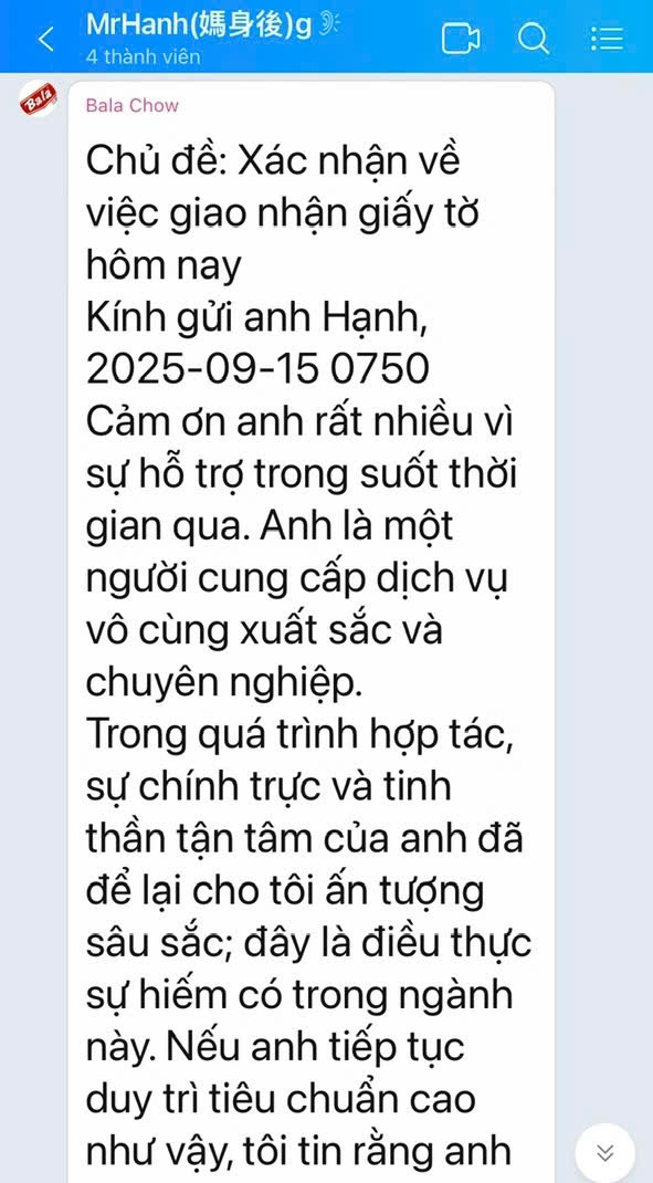 PHƯỚC THIỆN THỌ luôn trân trọng từng lời phản hồi mà khách hàng đã gửi gắm. Đó không chỉ là những dòng chữ, mà còn là tình cảm, sự tin tưởng và sự ghi nhận dành cho tập thể chúng tôi. Ông Chow Chne-Weng (Bala Chow) – một khách hàng mà chúng tôi rất trân quý – đã tin tưởng và chia sẻ cảm nhận rất chân tình về PHƯỚC THIỆN THỌ: